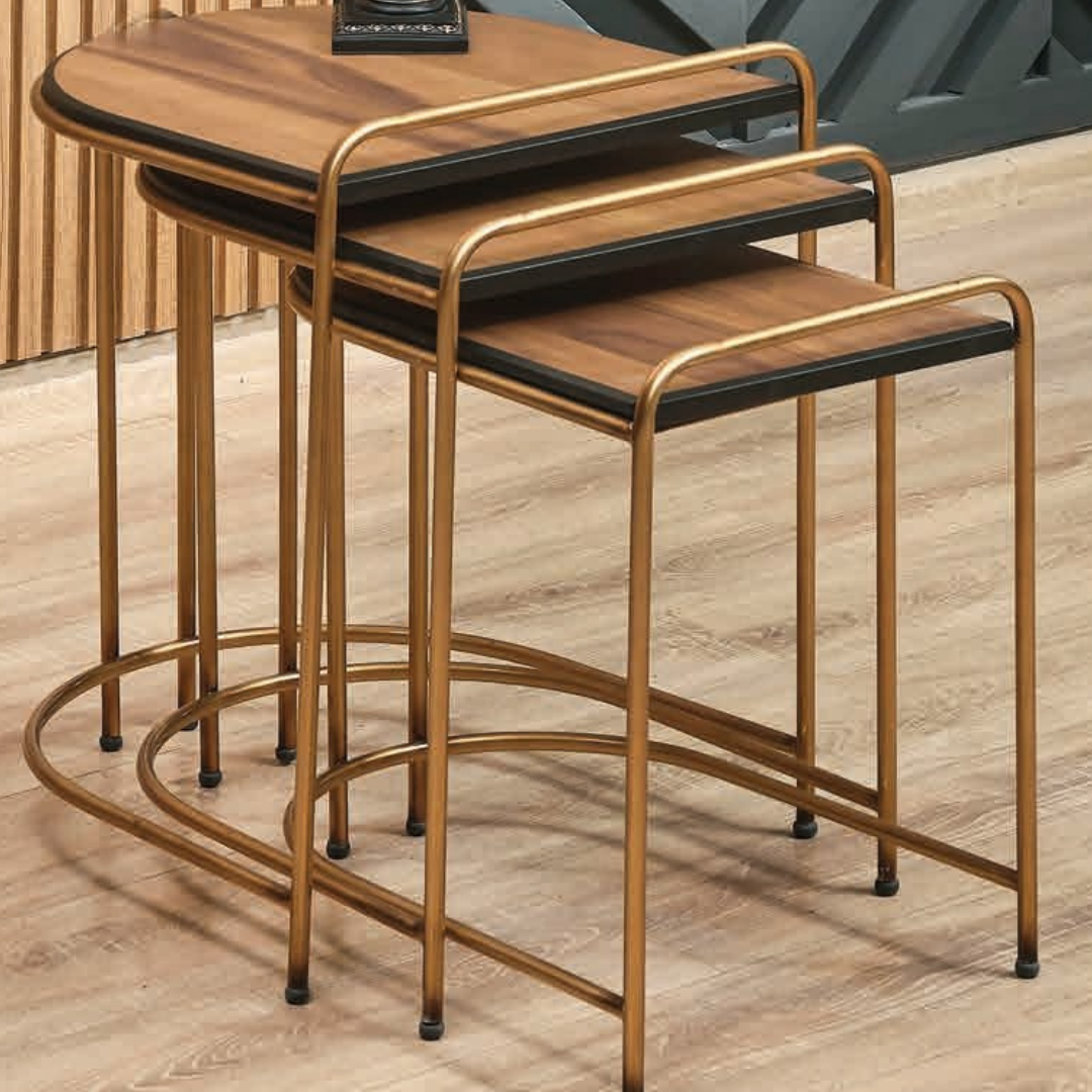 5089 Gold Ahşap Zigon Sehpa 3'Lü