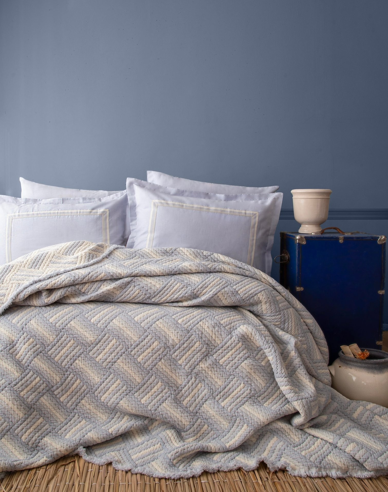 Apricitas Yatak Örtüsü Pikeli Set Sevilla Mavi Tek Kişilik, yaz mevsiminin ferahlığını ve şıklığını yatağınıza taşır.