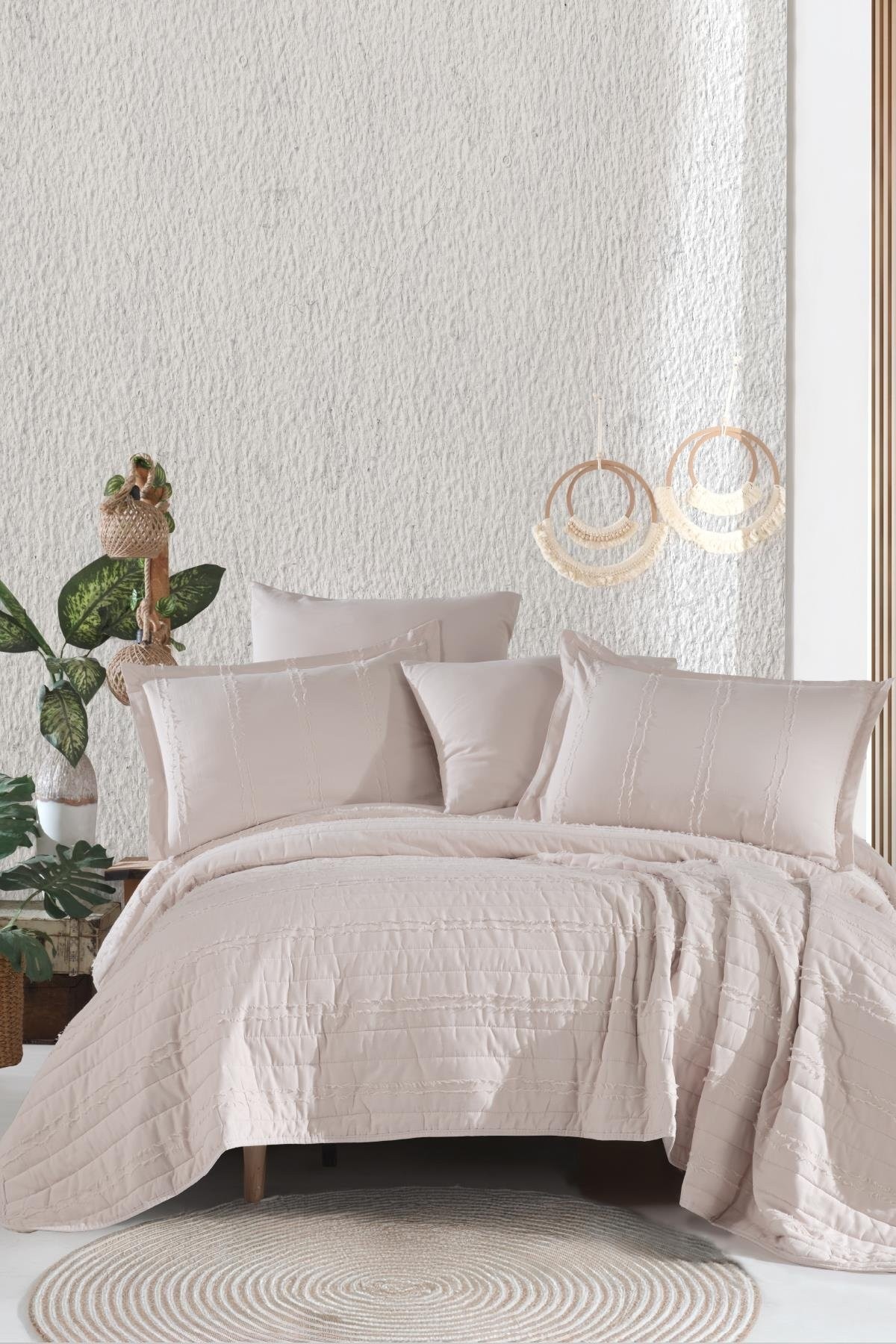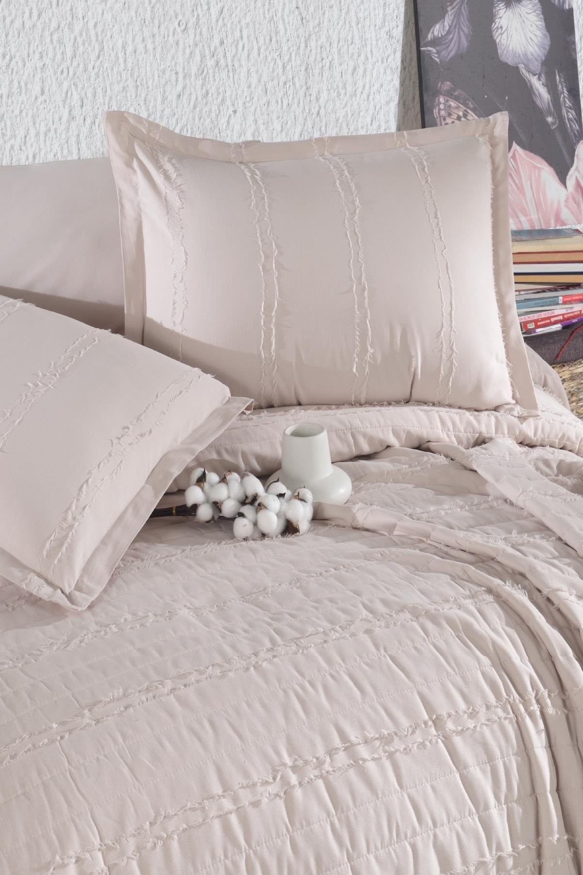 Clasy Avola Taş Pamuk Çift Kişilik Yatak Örtüsü Takımı
