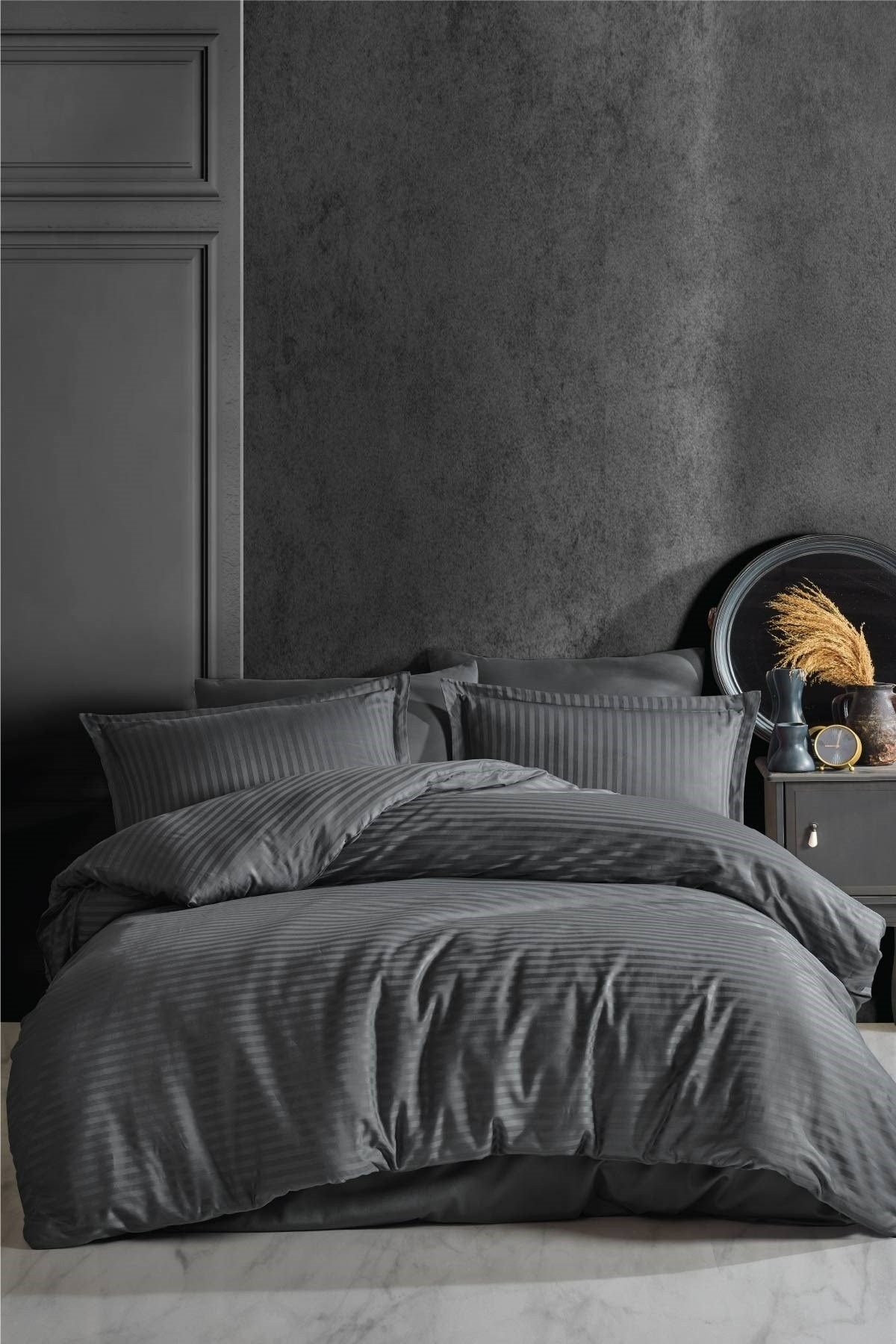 Clasy Çizgili Saten %100 Pamuk Nevresim Takımı Çift Kişilik Düz Renk V1 Siyah, doğal dokusu, modern görünümü ve üstün kalitesiyle uykunuzu lüksle buluşturur. Çelik Kardeşler VIP farkıyla şimdi sizlerle!
