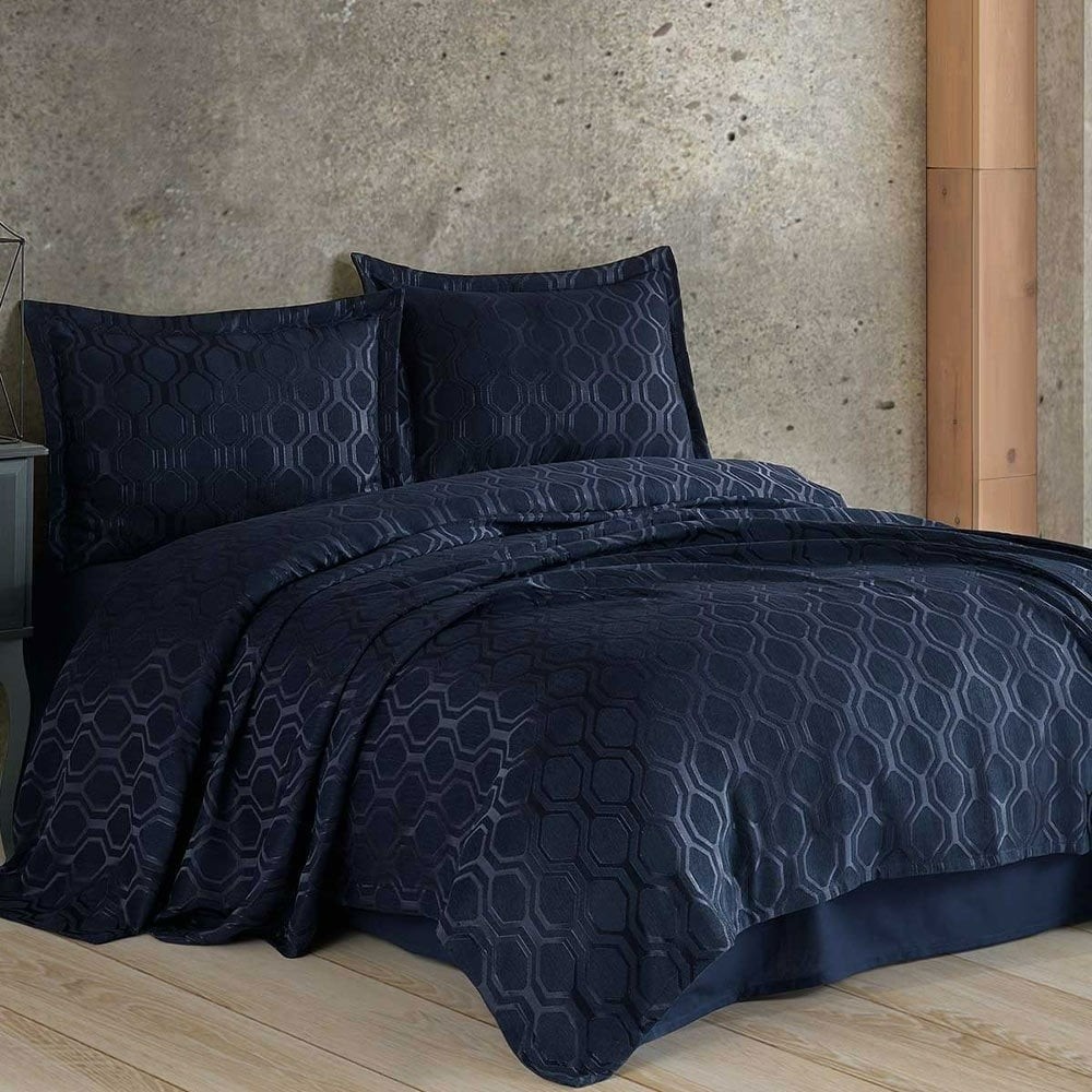 Elart Andrea Çift Kişilik Günlük Yatak Örtüsü Lacivert, şık ve modern deseni ile yatak odanıza zarafet katarken, nefes alan kumaşı sayesinde konforlu bir uyku deneyimi sunar. Çelik Kardeşler VIP farkıyla kaliteli alışveriş deneyimi için bu ürünü tercih edebilirsiniz.