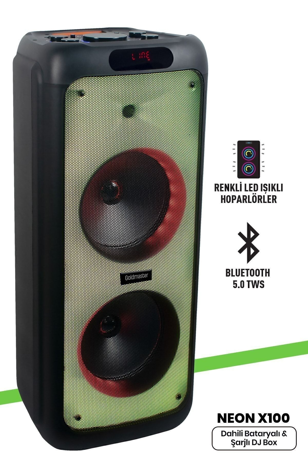 İster arkadaşlarınızla eğlenceli anlar paylaşın, ister bireysel müzik keyfi yaşayın; Goldmaster Neon X340 performansı, taşınabilirliği ve görselliğiyle sizi memnun edecek. Gitar ve mikrofon girişleri sayesinde canlı performanslar için de idealdir. Çelik Kardeşler VIP güvencesiyle şimdi elden taksit ve uygun fiyat avantajlarıyla sizlerle!