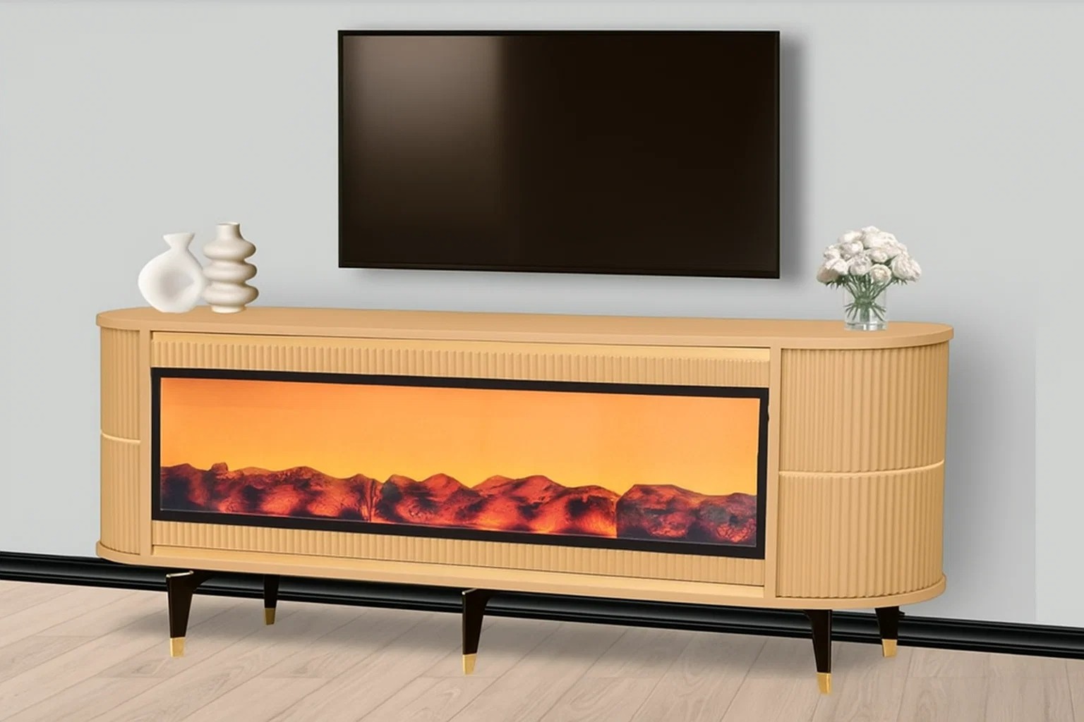 İkrasan Delüx Şömineli Tv Sehpası Cappucino Gold, dekoratif şömine tasarımı ve estetik detaylarıyla evinizin havasını değiştirir, hem şıklık hem fonksiyon kazandırır.