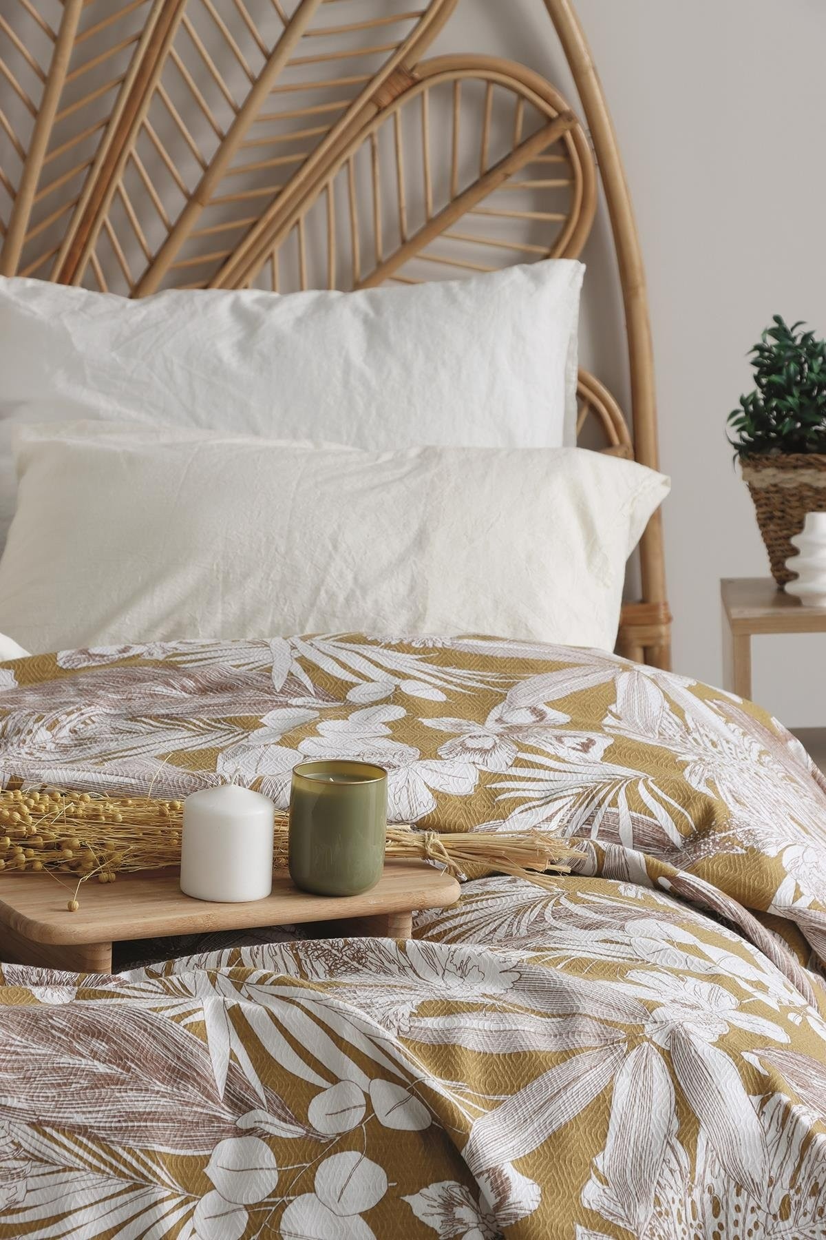 İyi Geceler İstanbul Daily serisinin tropikal esintiler taşıyan Hawai modeli, yatak odanıza ferah bir hava katıyor. %100 pamuk dokusuyla yumuşak ve nefes alabilen yapısı sayesinde konforlu bir kullanım sunan bu pike, dört mevsim kullanıma uygundur. Günlük kullanım için tasarlanmış desenleriyle yatak odanızı yenileyin.