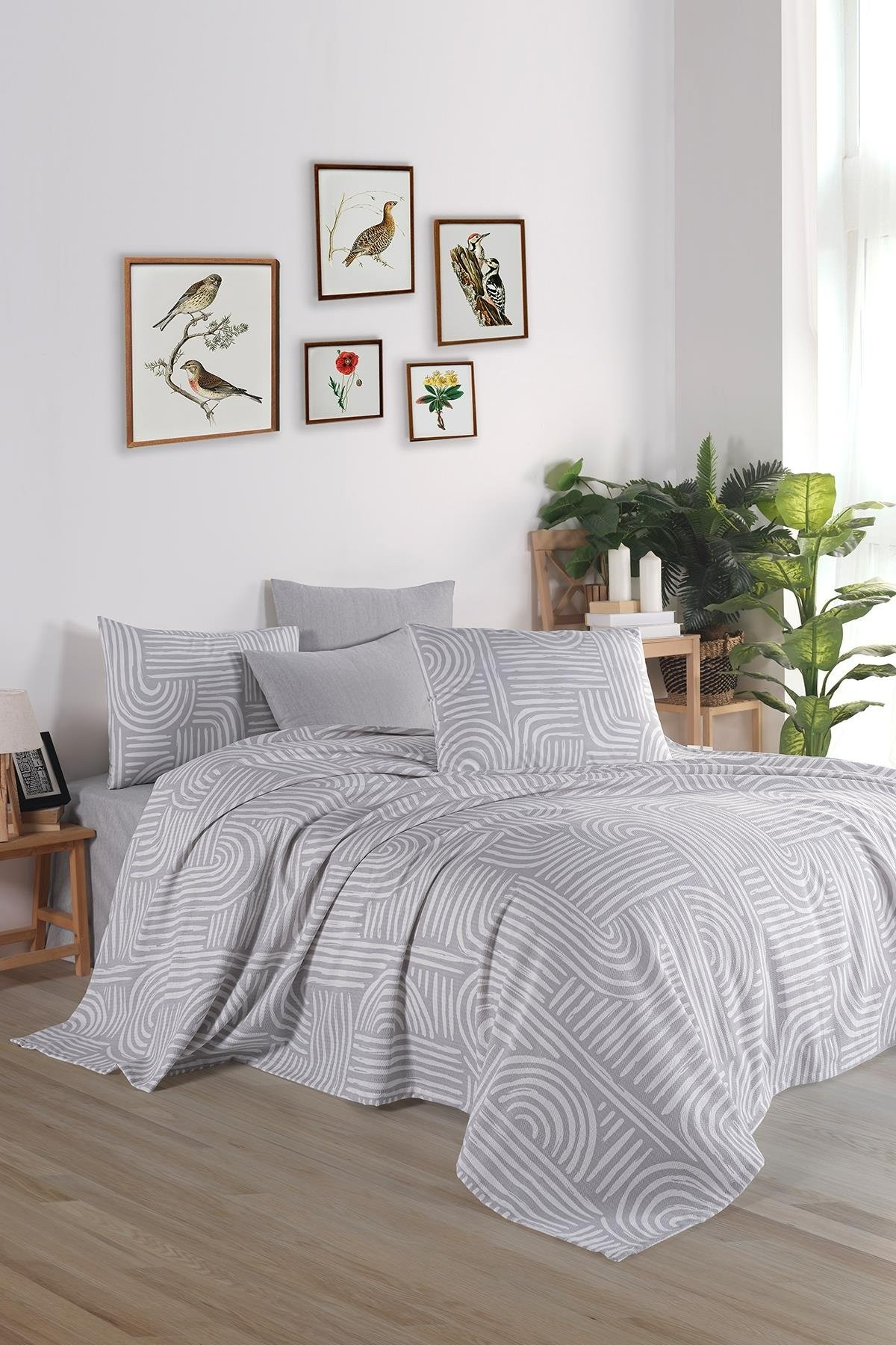 İyi Geceler İstanbul Daily serisinin zarif Şal modeli, modern desenleri ve yumuşak dokusuyla yatak odanıza şıklık katıyor. %100 pamuklu kumaşı sayesinde nefes alabilen yapıya sahiptir ve dört mevsim kullanım için uygundur. Günlük kullanım için özel olarak tasarlanmış bu pike, konfor ve estetiği bir arada sunar.