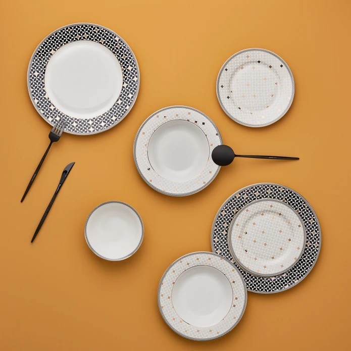 Karaca Alessa 24 Parça Yemek Takımı, porselenin zarifliğini şıklıkla birleştirerek sofralarınızı tamamlar. Günlük kullanımda veya özel davetlerde rahatlıkla kullanabileceğiniz bu takım, bulaşık makinesinde yıkanabilir özelliktedir.