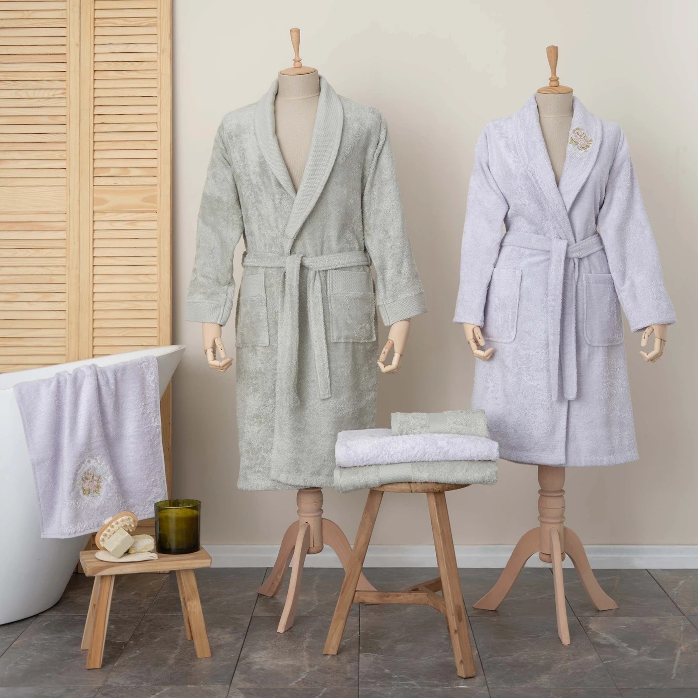Bu set, yüksek kaliteli pamuk dokusu ile uzun süreli kullanım ve yumuşaklık sağlar. Şıklığı ve zarafeti ile banyonuzda fark yaratır.