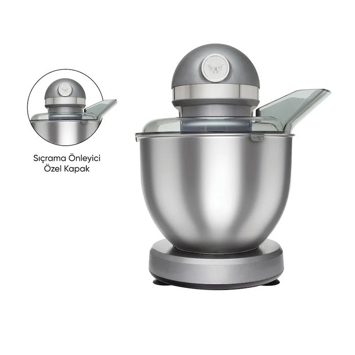 Tek hareketle açılabilen üst gövde ve güçlü tutucu ayaklar, mikseri stabil tutarak hamurun karışımı sırasında dahi cihazın sabit kalmasını sağlar.
