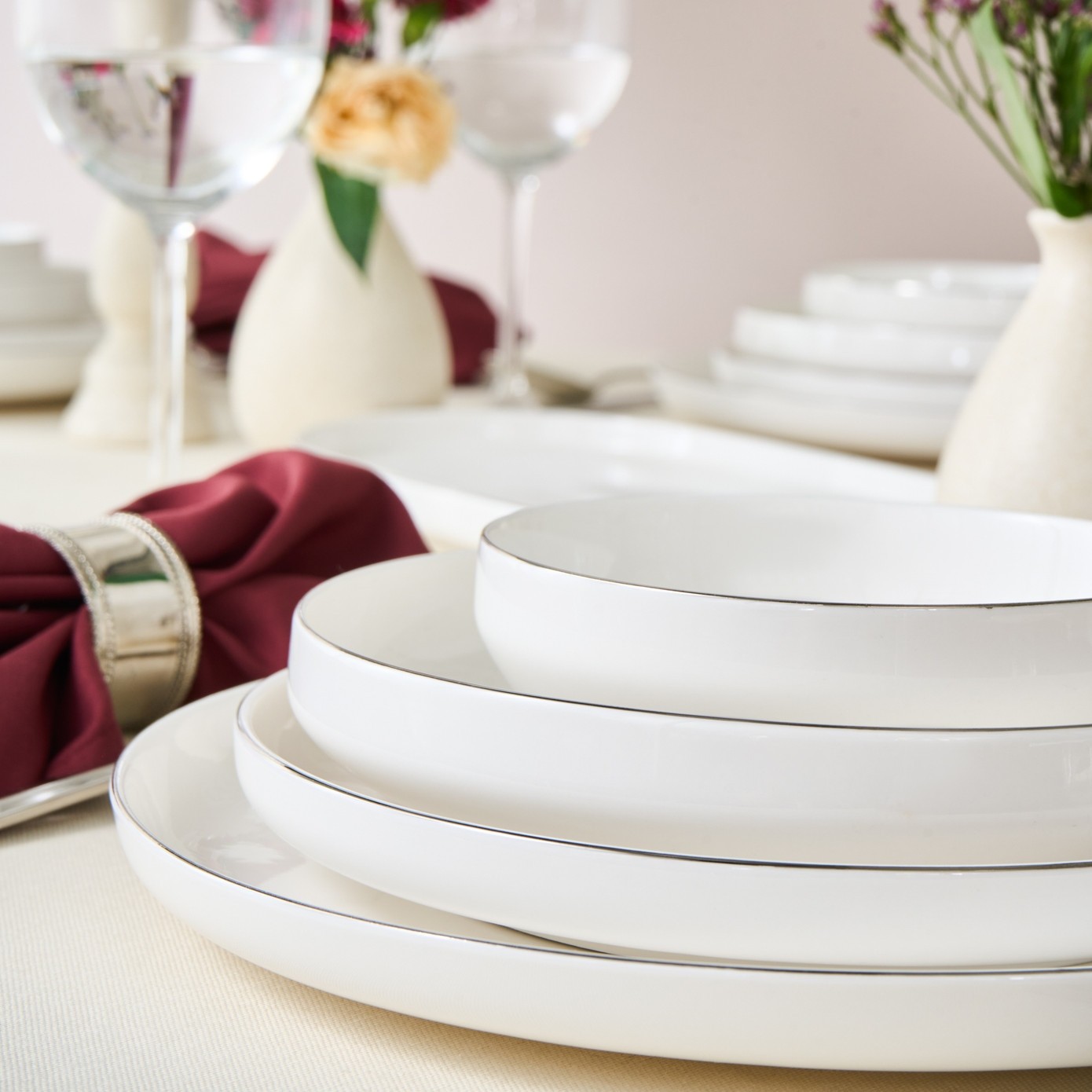 Karaca Streamline Solaris 6 Kişilik Porselen Yemek Takımı, modern tasarımı ve zarif ışıltısıyla sofranıza şıklık katacak. Sadeliği ve şıklığı bir araya getiren düz ve desensiz tasarımı, her tarz sofra dekoruyla uyum sağlar. Hem davet sofralarınız hem de günlük kullanım için ideal olan bu porselen yemek takımı, zarafeti ve fonksiyonelliği bir arada sunar. 22 parça setiyle eksiksiz bir sofra hazırlamanız için tüm gereksinimleri karşılar.