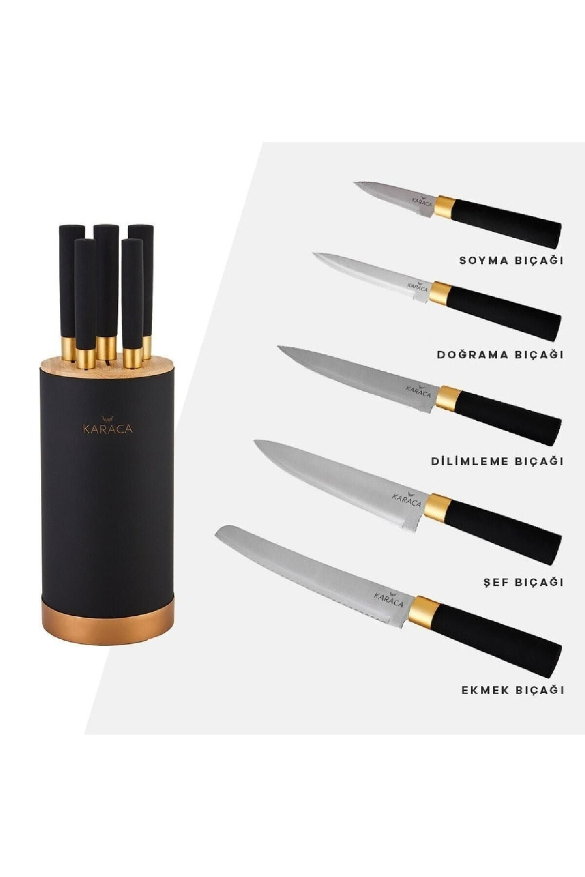HesabımKaraca Woodland Black 6 Parça Bıçak Seti, şık siyah tasarımı ve dayanıklı bıçaklarıyla mutfakta mükemmel kesim performansı sağlar. Farklı türdeki bıçaklarıyla her türlü yemek hazırlığı için ideal bir seçenektir. Çelik Kardeşler VIP garantisi ve elden taksit avantajıyla hemen sahip olun!