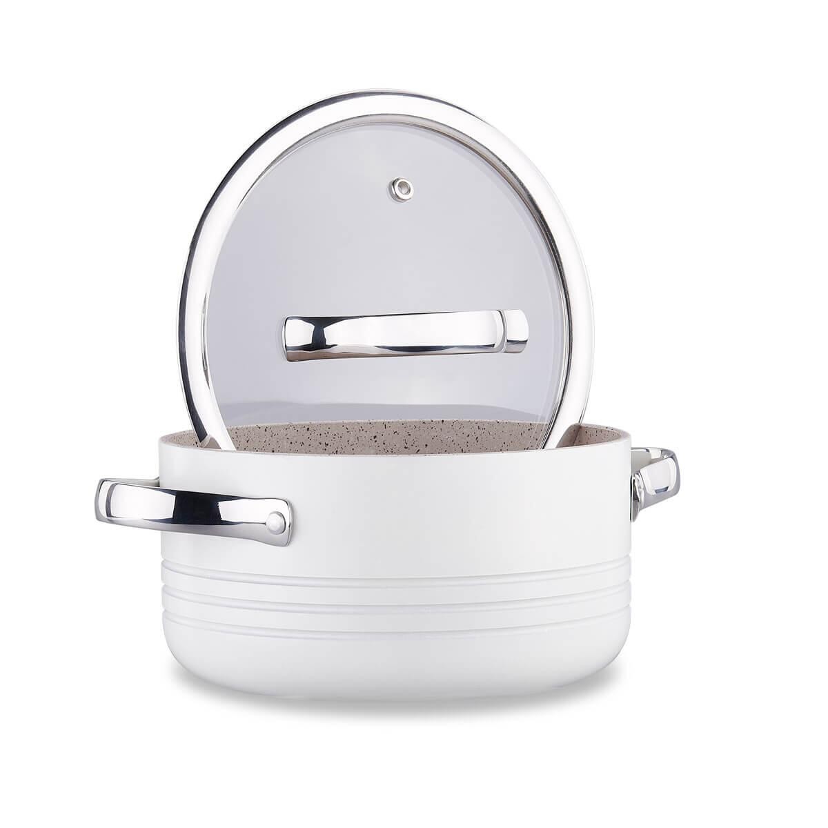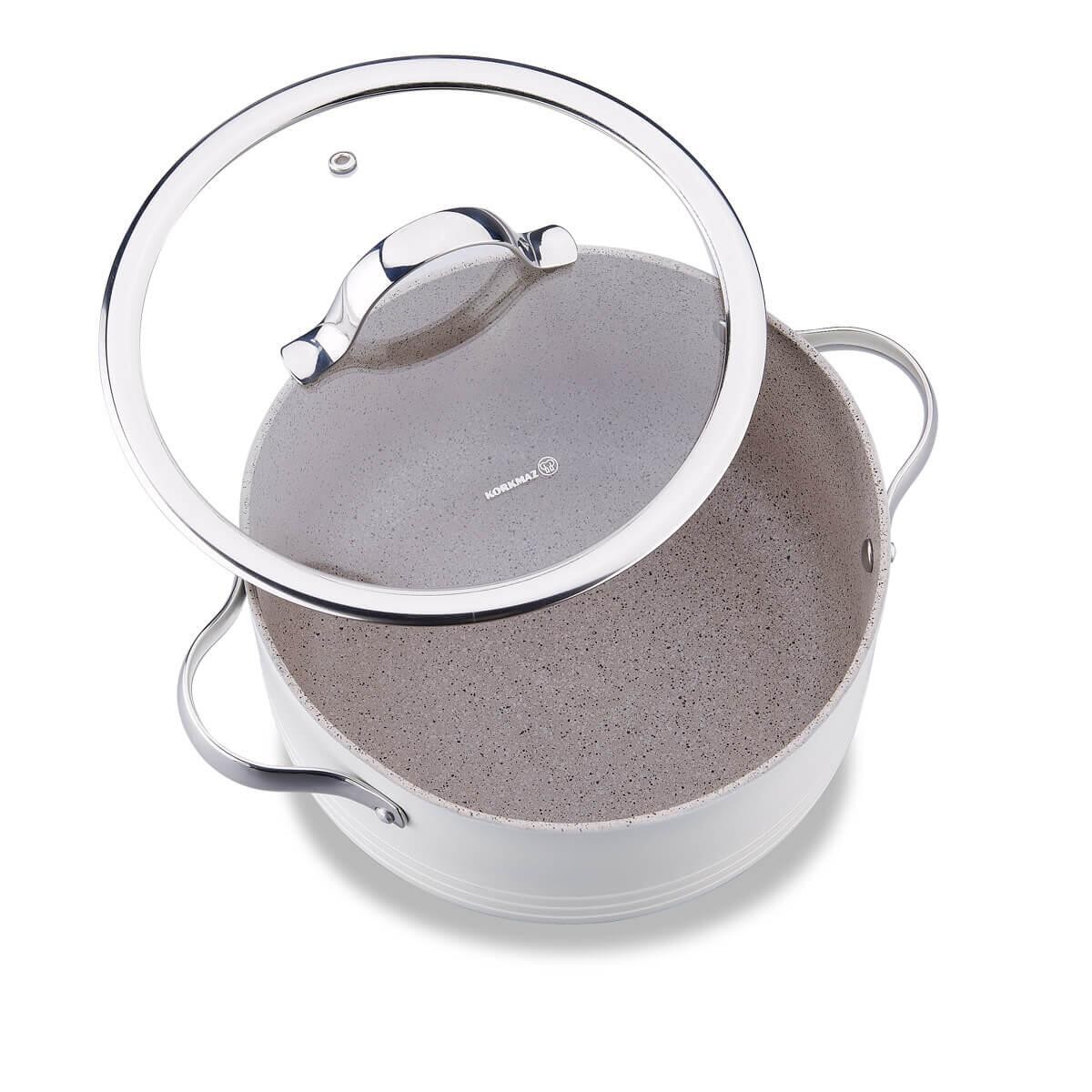 HesabımKorkmaz Linea Rosagold Tencere Seti, zarif rose gold tonlarıyla mutfağınıza estetik bir dokunuş katarken, üstün kaplama teknolojisiyle yemeklerinizi sağlıkla ve keyifle pişirmenizi sağlar. Volkanit görünümlü özel PTFE kaplama, yapışmazlıkta üst seviye performans sunarken, çizilmelere karşı maksimum direnç gösterir.
