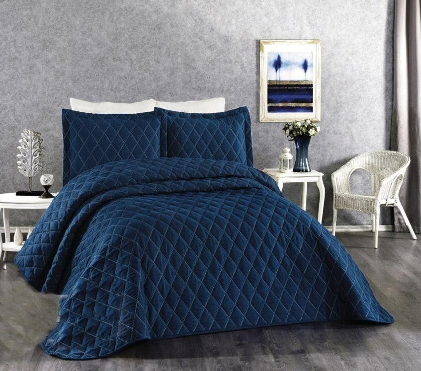 LALIDYA Çift Kişilik Yatak Örtüsü Nare Lacivert, asil duruşu, kaliteli dokusu ve modern çizgileriyle yatak odanızı yenilemenin en zarif yoludur.