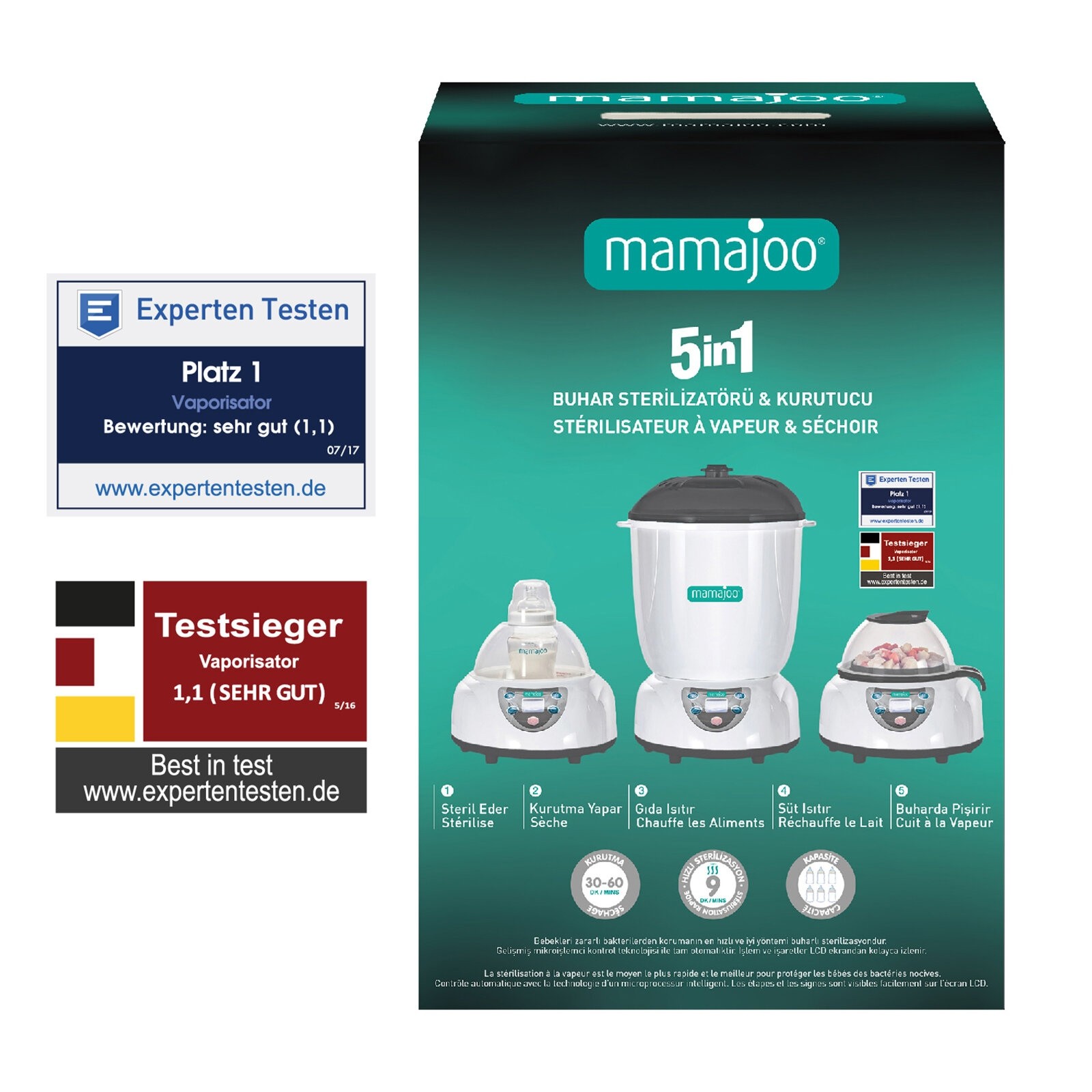 Mamajoo 5 İşlevli Kurutmalı Buhar Sterilizatörü ve Mama Isıtıcı, bebeğinizin beslenme ürünlerini sterilize etme, kurutma, buharda pişirme, mama ve süt ısıtma gibi temel ihtiyaçlarına tek cihazla cevap verir. Çelik Kardeşler VIP farkıyla sunulan bu çok işlevli cihaz, hijyen, konfor ve güvenliği bir arada sunar. Gelişmiş mikro işlemci teknolojisiyle tam otomatik çalışan sistem, ebeveynlerin işini kolaylaştırırken bebek sağlığını en üst düzeyde korur. Hem evde hem seyahatte pratik kullanım imkanı sağlar.
