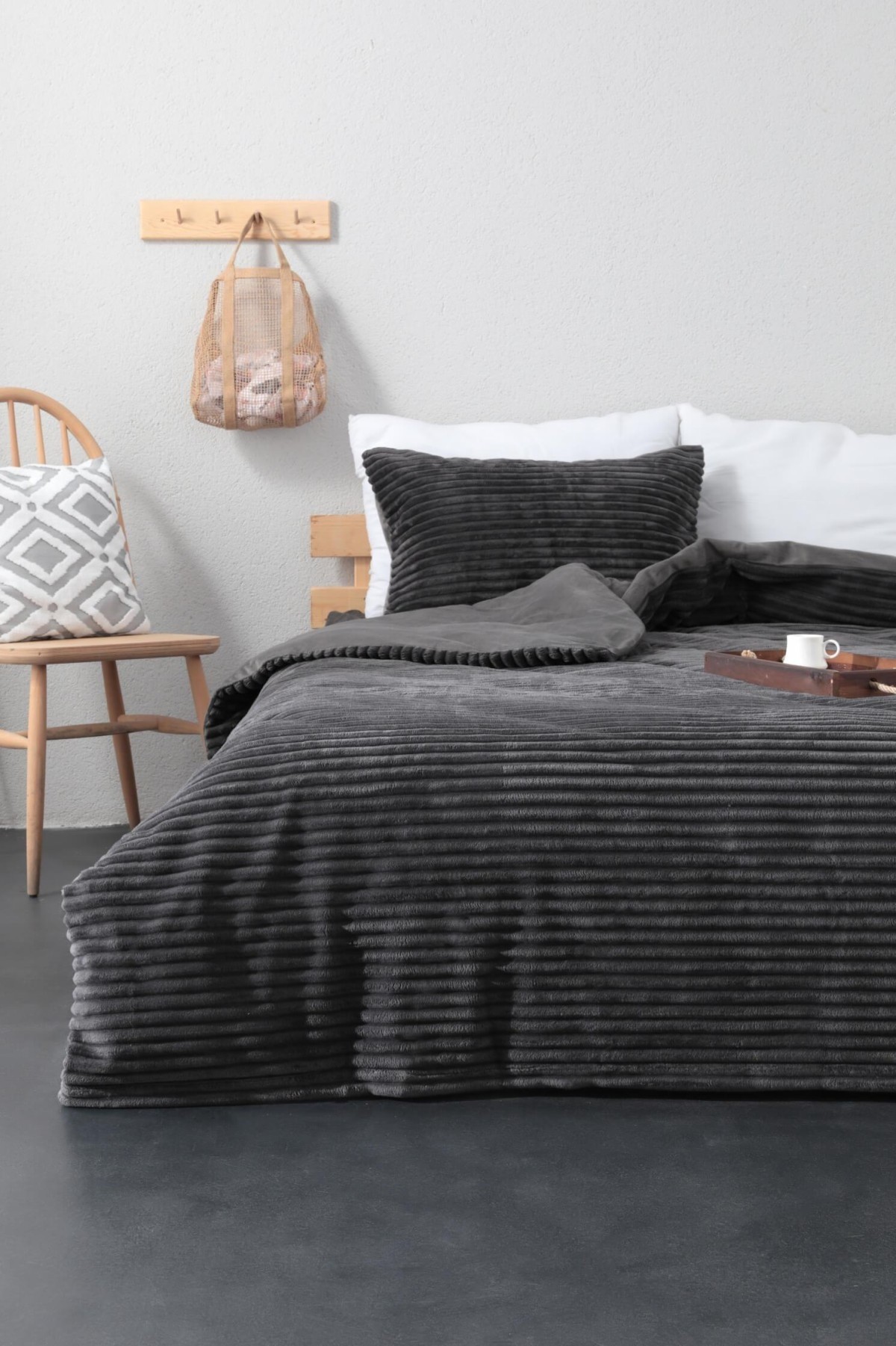 Merinos Eternity Fitilli Peluş Tek Kişilik Nevresim Takımı - Antrasit, %100 polyester malzemeden üretilmiştir ve yumuşak, sıcak tutan bir dokusu vardır. Takım, 160x220 cm boyutunda bir nevresim, 100x200 cm boyutunda bir çarşaf ve 50x70 cm boyutunda bir yastık kılıfı içerir. Ürün, fermuarlı şeffaf PVC paketinde gelir ve pratik bir şekilde saklanabilir.