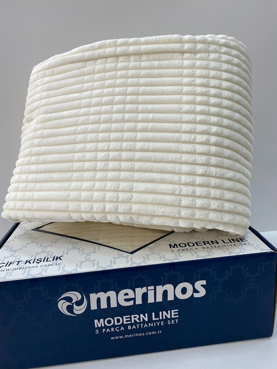 Merinos Modern Line 2 Parça Battaniye Seti - Kemik, yumuşak dokusuyla hem konforu hem de estetiği bir araya getiriyor. Zarif kemik rengiyle bulunduğu ortamın havasını değiştirirken, pencereli karton kutusuyla şık bir sunum sağlar. Battaniye olarak veya yatak örtüsü şeklinde kullanılabilen bu set, Çelik Kardeşler VIP ayrıcalığıyla sizlere ulaşıyor.