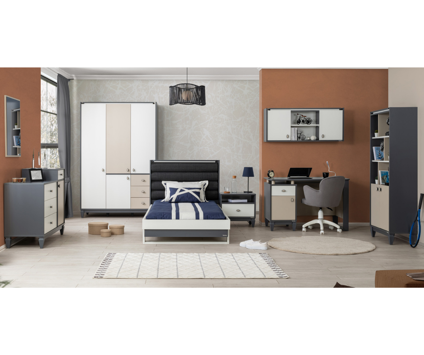 Modern ve şık tasarıma sahip genç odası takımları şimdi uygun fiyatlarla satışta! Hem gençlerin tarzına hitap eden hem de işlevsel parçalarla dolu bu setler, rahat yatak, geniş depolama alanına sahip gardırop, ve ders çalışmak için ergonomik bir masa içerir. Dayanıklı malzemelerden üretilen mobilyalar, uzun ömürlü ve kullanışlıdır.