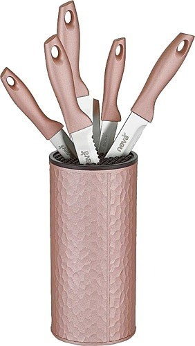 Neva N2471 Sweet Petek Rose Chocolate 6'lı Bıçak Seti, şık ve dayanıklı tasarımı ile mutfakta ihtiyaç duyduğunuz tüm bıçakları bir arada sunar.