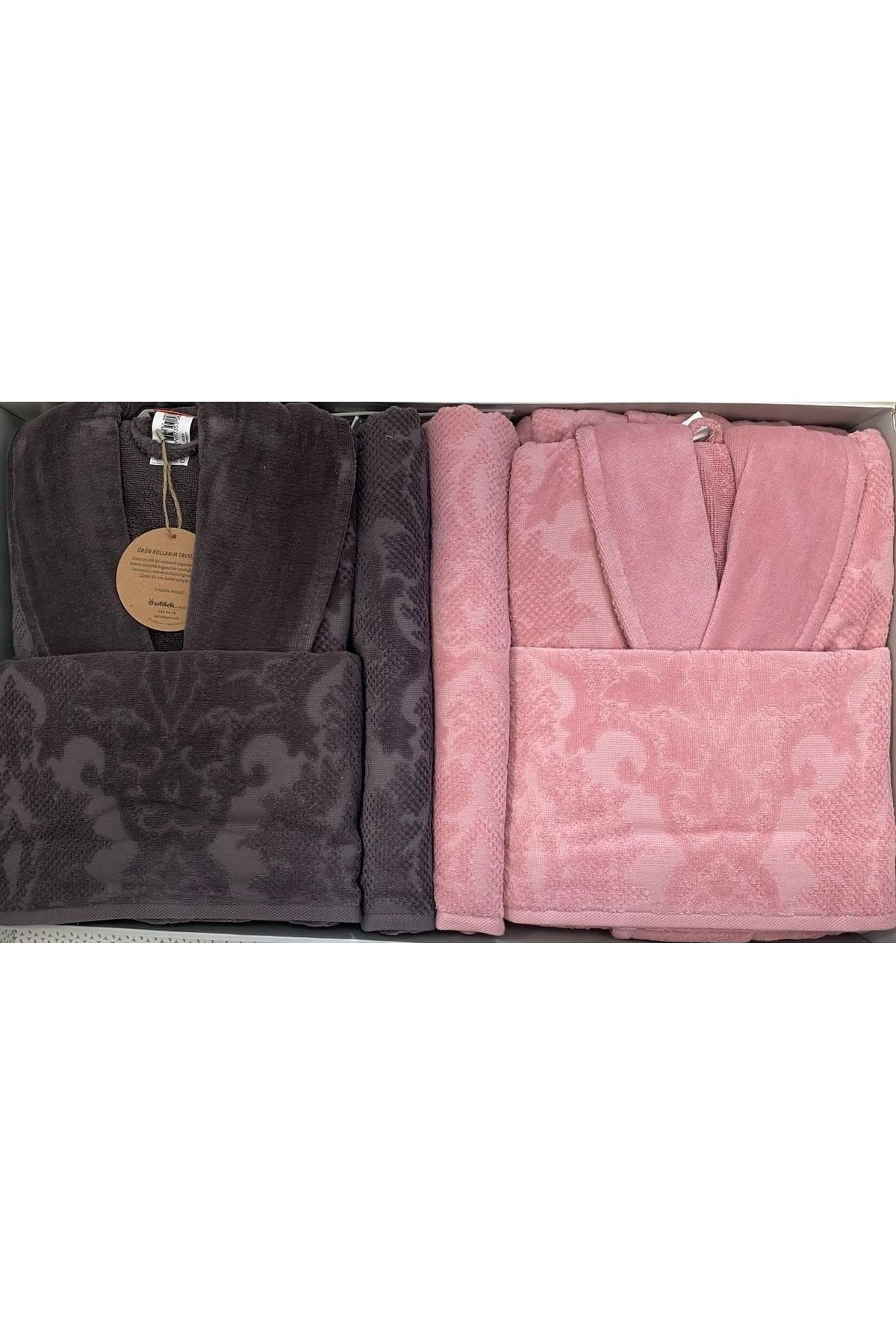 HesabımÖzdilek Curve Aile Bornoz Seti Pembe - Antrasit, banyo sonrası konforu ve zarafeti bir araya getiriyor. Çelik Kardeşler VIP ayrıcalığıyla sunulan bu set, %100 pamuk yapısı sayesinde cildinize yumuşak ve nazik bir dokunuş sağlar. Yüksek su emici özelliği ile hem kurulanma hem de hızlı kuruma performansı sunar. Modern pembe ve antrasit renk kombinasyonuyla şıklığı banyonuza taşırken, zarif tasarımı ile çeyiz ve hediye seçenekleri arasında da öne çıkar.