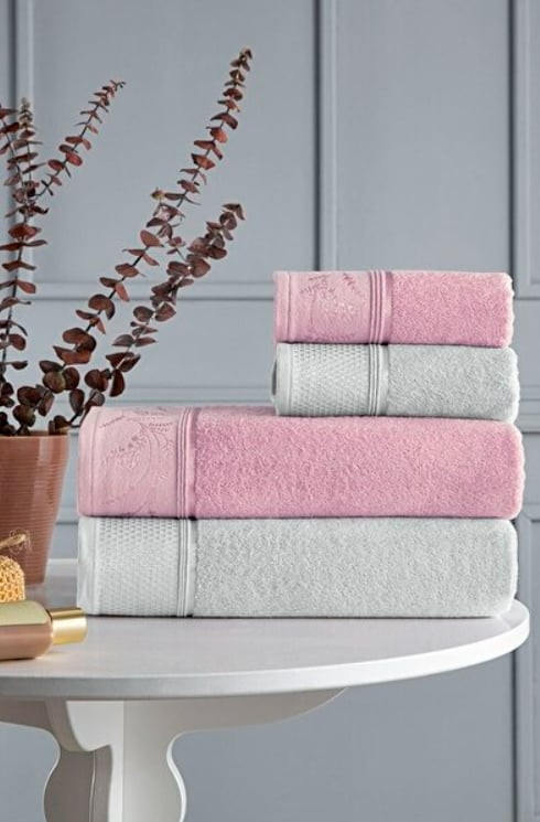 Özdilek Ditsy Best Set Hamam Seti Pembe-Gri, hem şık banyoların tamamlayıcısı hem de kaliteli bir kullanım sunan setiyle öne çıkıyor. Estetik renkleri ve pamuklu dokusuyla banyonuza değer katar.