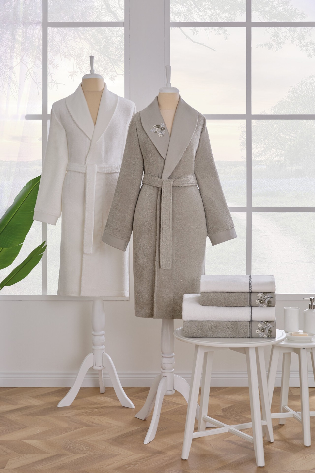 Özdilek Valioso Aile Bornoz Takımı, zarif krem-gri renk uyumu ve %100 pamuk dokusuyla konforlu bir banyo deneyimi sunar. 10 parçalık zengin içeriğiyle hem kadın hem erkek kullanıcılar için ideal olan bu set, su emiciliği yüksek, cilt dostu kumaşıyla fark yaratır. Günlük kullanımda ya da özel günlerde şıklığı ve yumuşaklığı bir arada yaşamak isteyenler için mükemmel bir seçim!