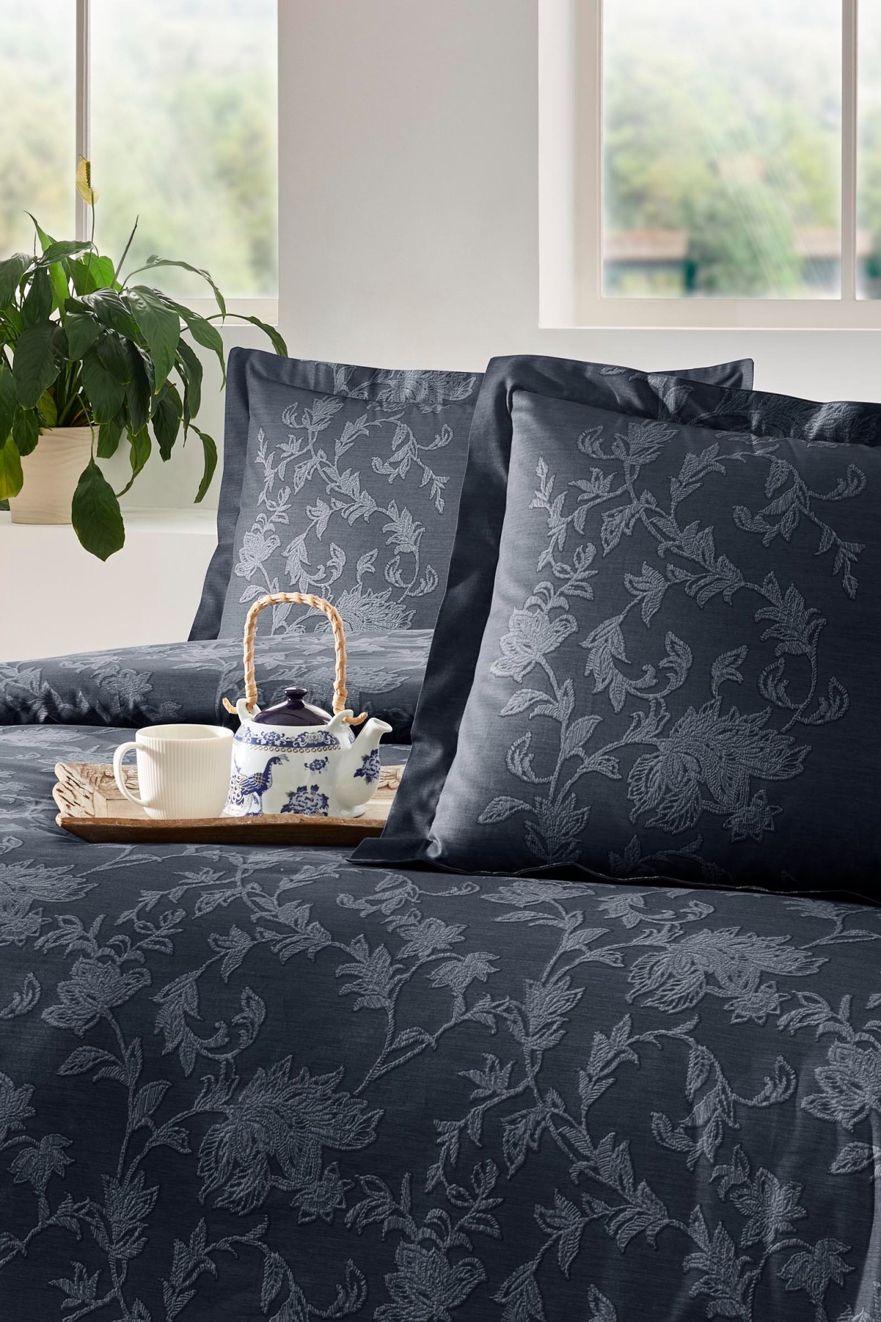 Şık ve klasik bir Toile De Jouy deseniyle tasarlanmış bu set, yatak odanıza zarif bir dokunuş katabilir.