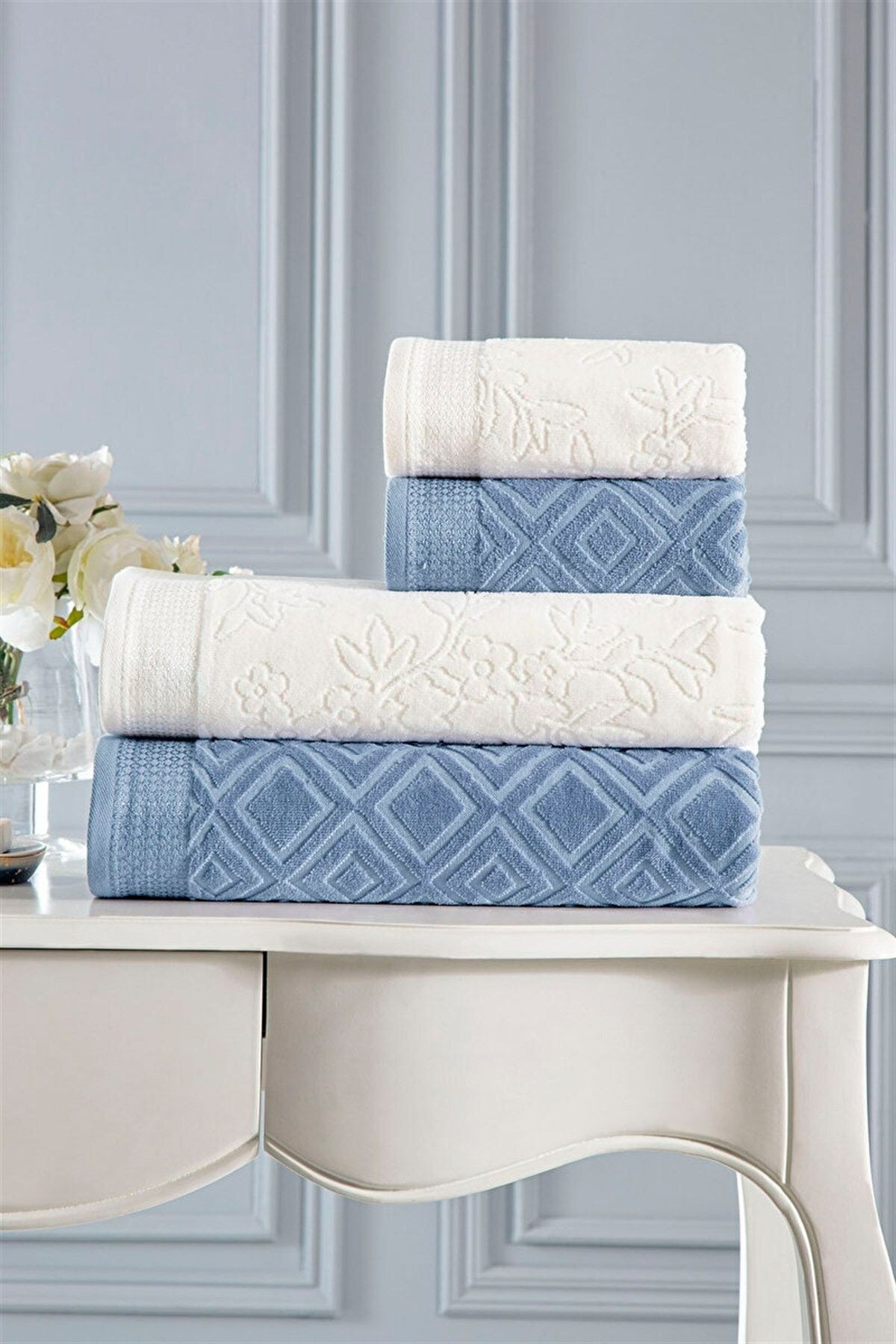 Özdilek Pastoral Best Set (Hamam Takımı) Krem-Lacivert, zarif renk uyumu ve yüksek kaliteli pamuk yapısıyla banyonuza şıklık ve konfor katar. %100 pamuk dokusu sayesinde yüksek su emiciliği sağlar, cildinizle uyumlu yumuşaklığıyla günün yorgunluğunu atmanıza yardımcı olur. Çift kişilik bu özel set, hem estetik hem de fonksiyonel kullanım sunar.