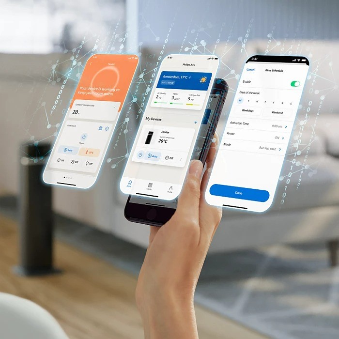 Philips Air+ Uygulaması ile Üstün Kontrol: Isıtıcınızı evde ya da dışarıda olun, Air+ Uygulaması sayesinde her an kontrol edebilir, ısıtmanızı ayarlayabilir, izleyebilir ve planlayabilirsiniz. İhtiyacınıza en uygun sıcaklık deneyimini yaratın.