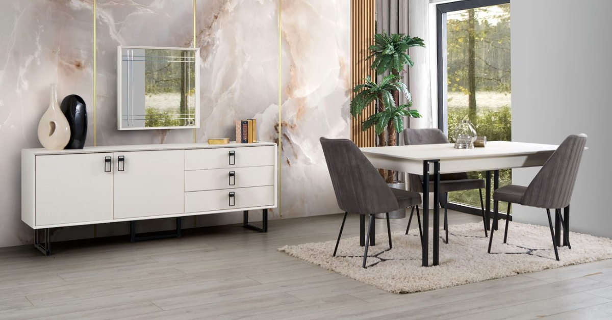 HesabımPuzzle Yemek Odası, şıklığı ve işlevselliği bir arada sunarak, salonunuza modern bir hava katar. Çelik Kardeşler VIP’nin sunduğu elden taksit fırsatları ile bu özel Yemek Odasına kolayca sahip olabilir, evinizde kalite ve estetiği buluşturabilirsiniz.