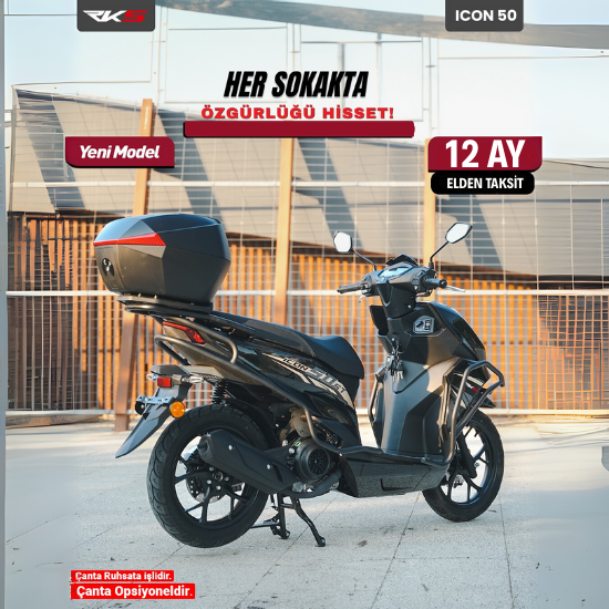 RKS Icon 50 cc Scooter Motosiklet, hafif gövdesi, düşük yakıt tüketimi ve güvenli fren sistemi ile şehir hayatında özgürlüğünüzü artırır. Çelik Kardeşler VIP ayrıcalıkları ve elden taksit kolaylığıyla şimdi ulaşılabilir.