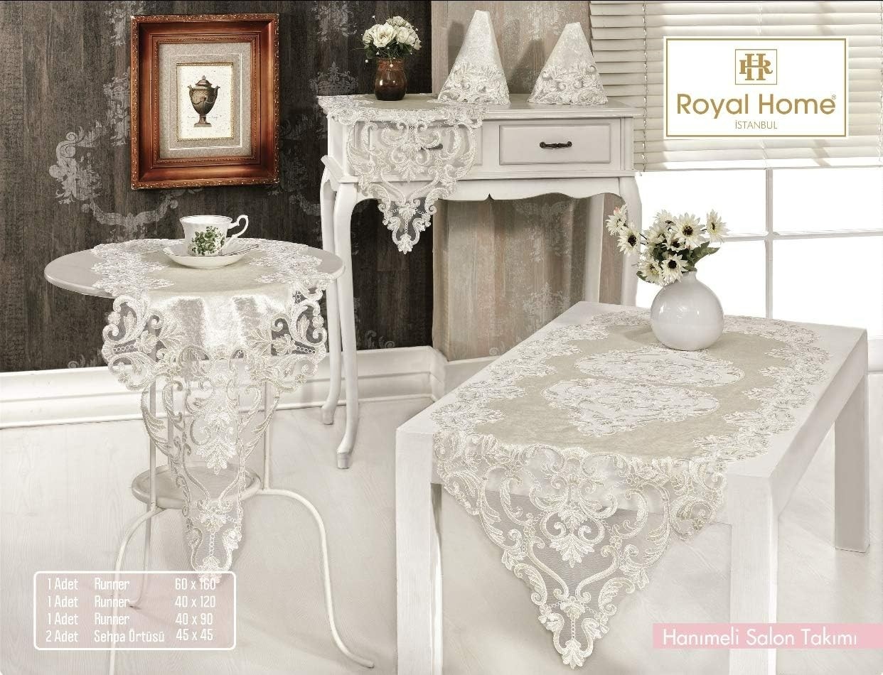 Royal Home Hanımeli Kadife Salon Takımı, zarafetiyle misafirlerinizi etkileyecek. Salonunuzda şıklığı ve konforu bir arada sunmak istiyorsanız, bu özel set tam size göre. Runner ve sehpa örtüleriyle yaşam alanınıza uyumlu ve bütünsel bir görünüm kazandırır.