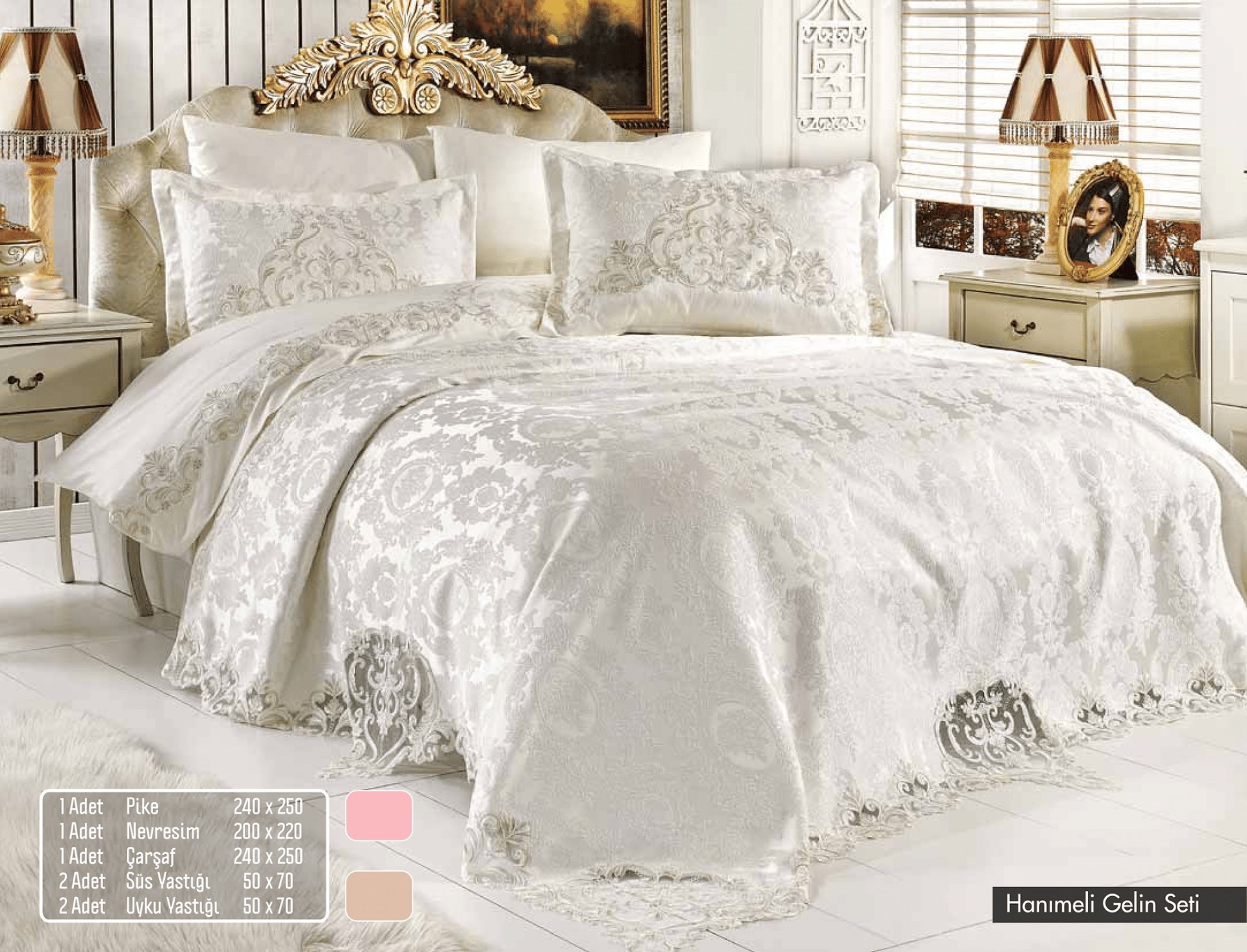 Royal Home Hanımeli Pike Gelin Seti, zarafeti ve konforu bir arada sunarak çeyizlik tercihlerde fark yaratır.