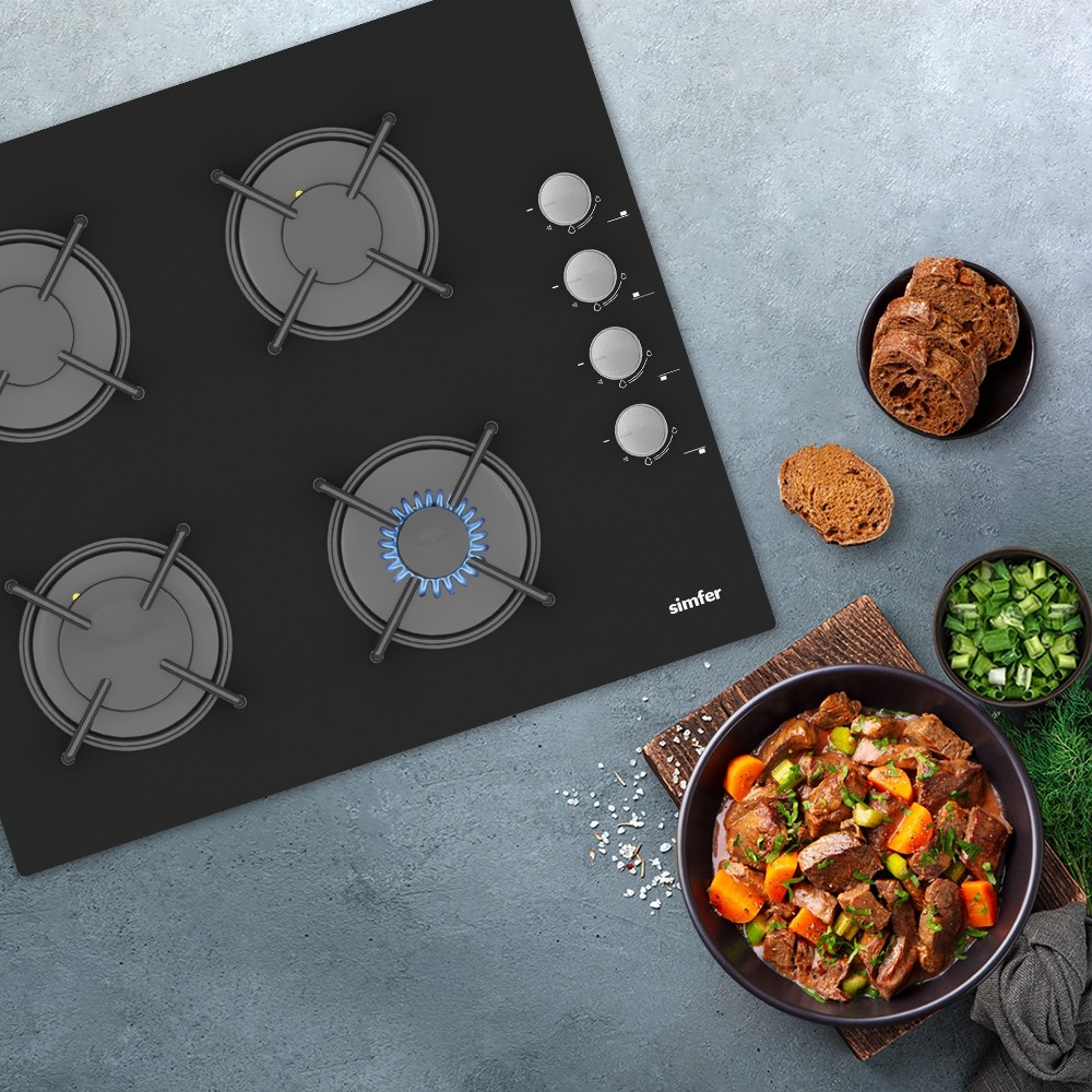 Simfer 3046 N Siyah Set Üstü Cam Ocak, şık tasarımı ve güvenli kullanım özellikleriyle mutfaklara zarafet katar. 4 gazlı göz ile yemeklerinizi aynı anda kolayca pişirebilmenize olanak tanır. Emaye ızgaraları sayesinde tencere ve tavalarınız için sağlam bir kullanım sağlar. Gaz emniyet sistemi ile güvenliği ön planda tutarken, düğmeden otomatik ateşleme özelliği ile pratik kullanım imkânı sunar. Siyah cam yüzeyi, modern mutfak dekorasyonlarına uyum sağlayarak kolay temizlenebilir yapısıyla öne çıkar.